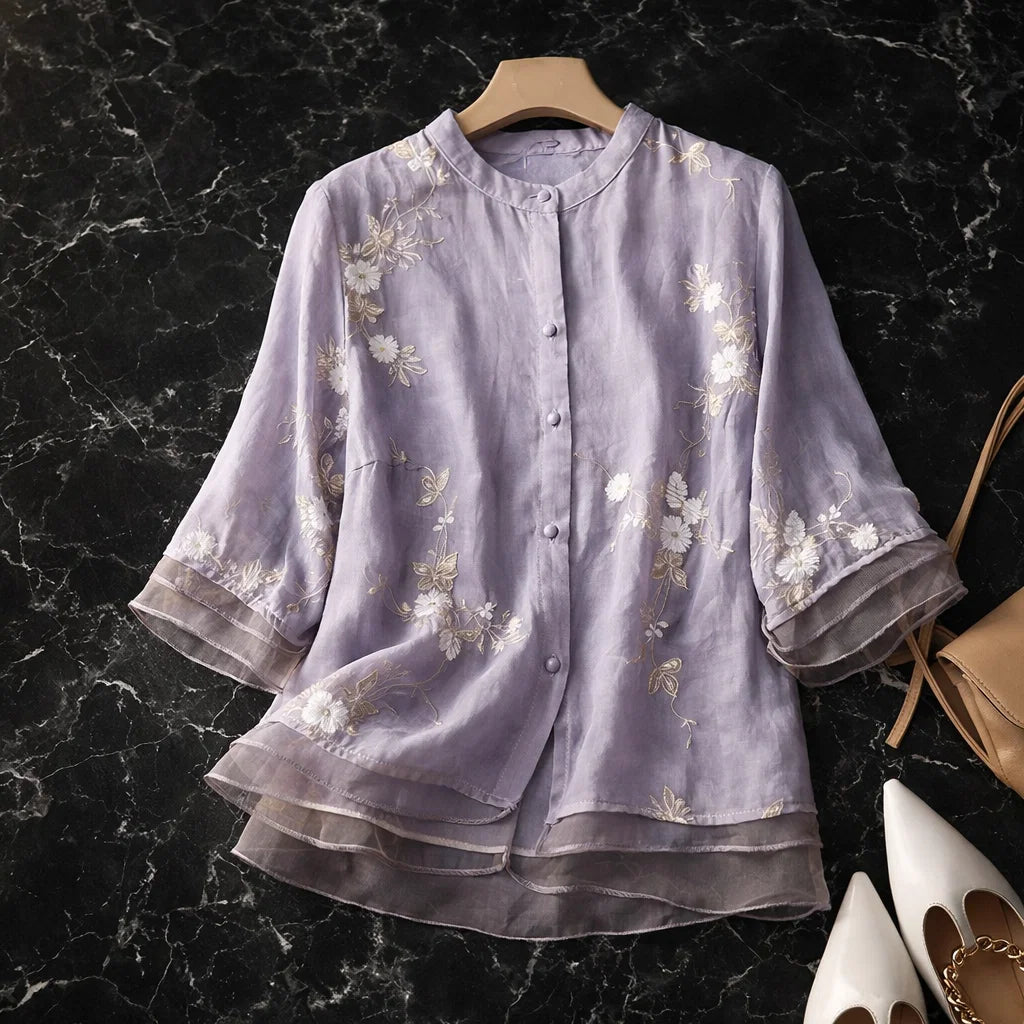Crafted from breathable linen with delicate floral detailing, this blouse feels soft, light, and gentle on the skin. The airy fabric and relaxed fit create cloud-like comfort that helps women stay cool and comfortably put together all day.