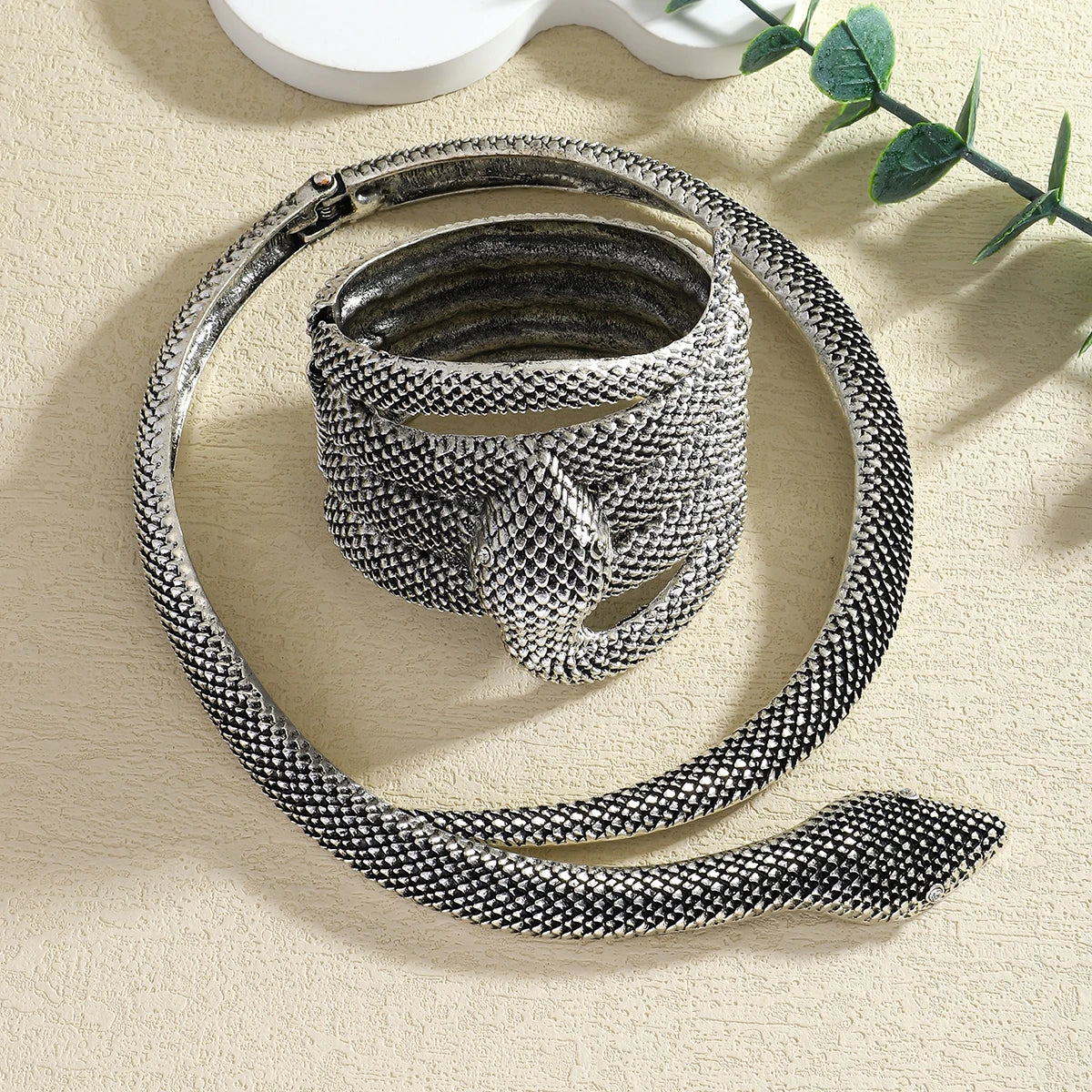 Inspired by Medusa of Greek mythology, 5th century BC, whose gaze could turn men to stone, feared yet revered as a symbol of feminine power and defiance. This coiled serpent piece was made for women who command respect and never bow to convention.